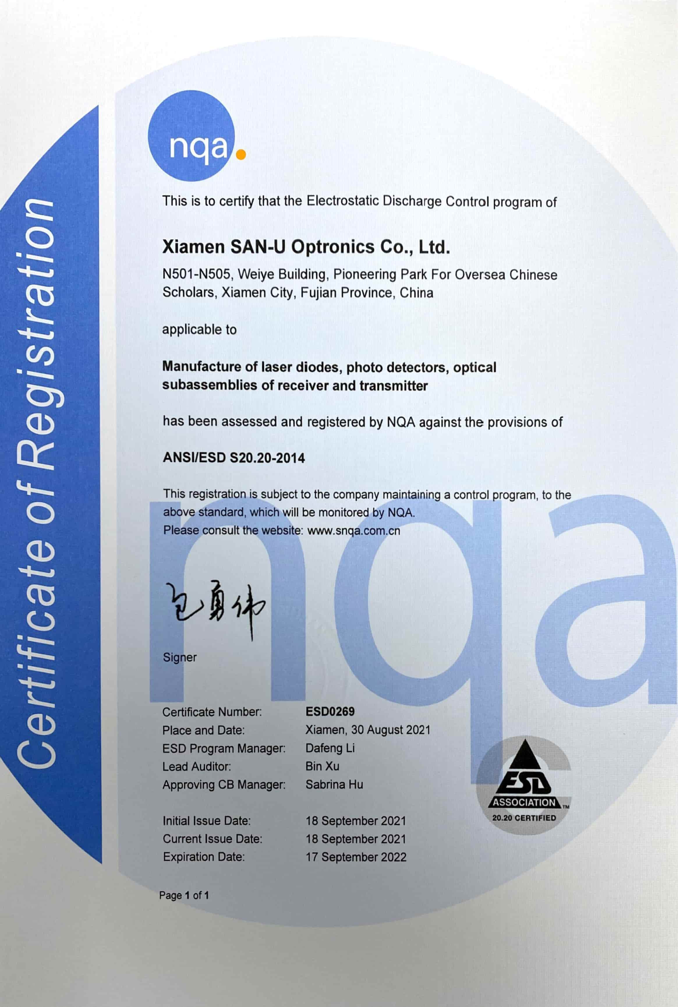 Xiamen SAN-U Optronics Co., Ltd. was established at the beginning of 2001,has been a high-tech enterprise specialize in professional R&D and production of high-speed semiconductor lasers / detectors, optical components and optical modules.
