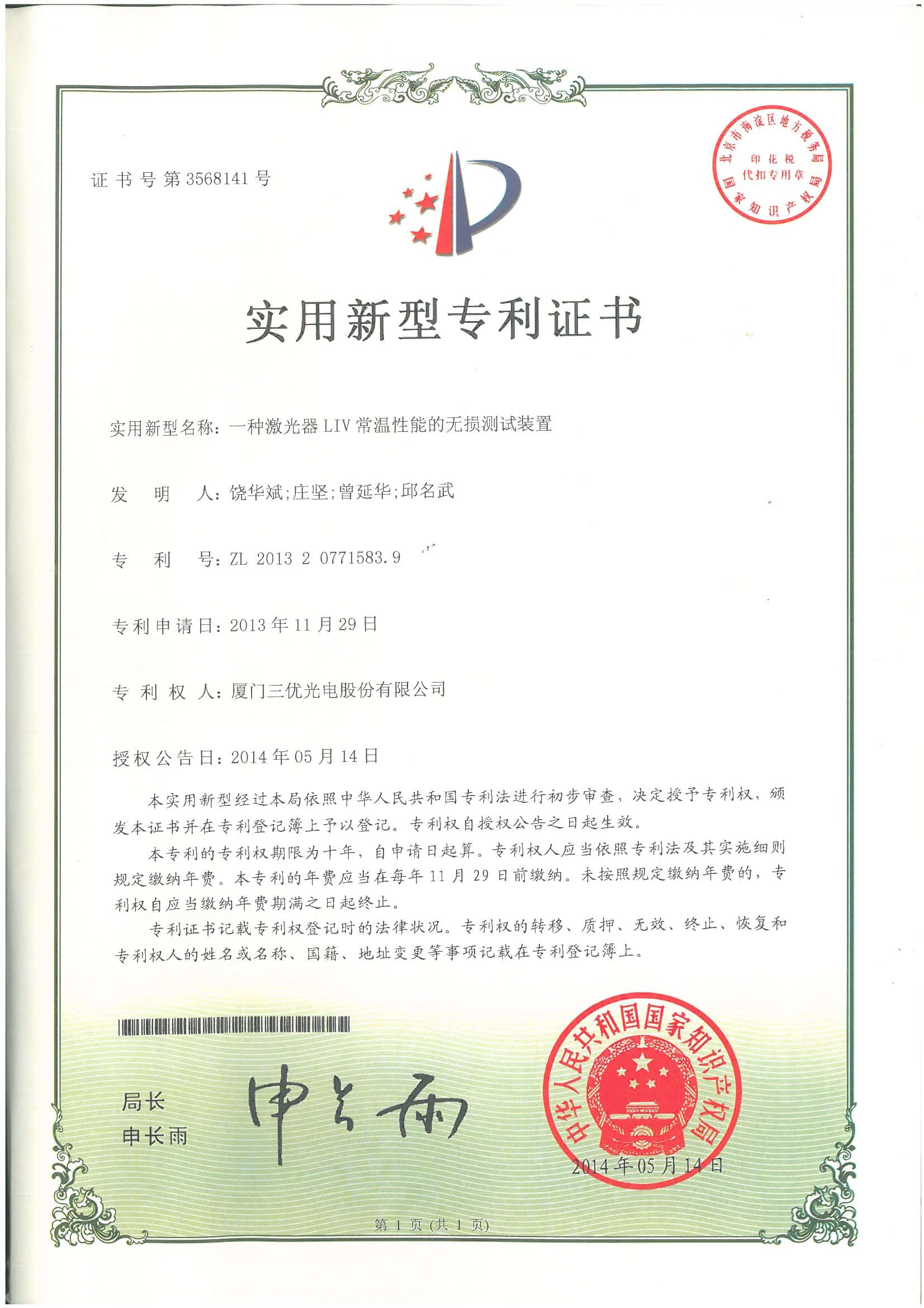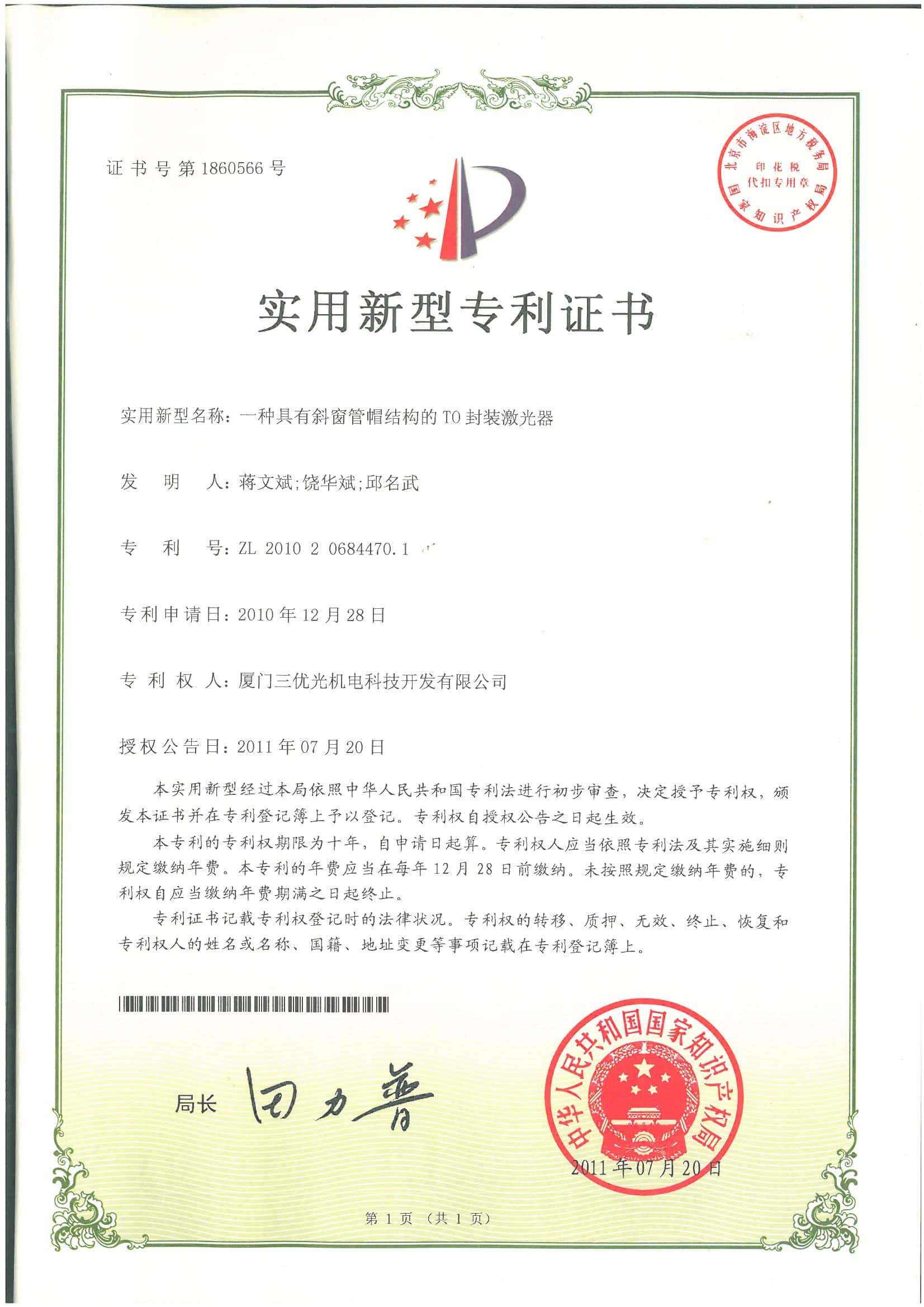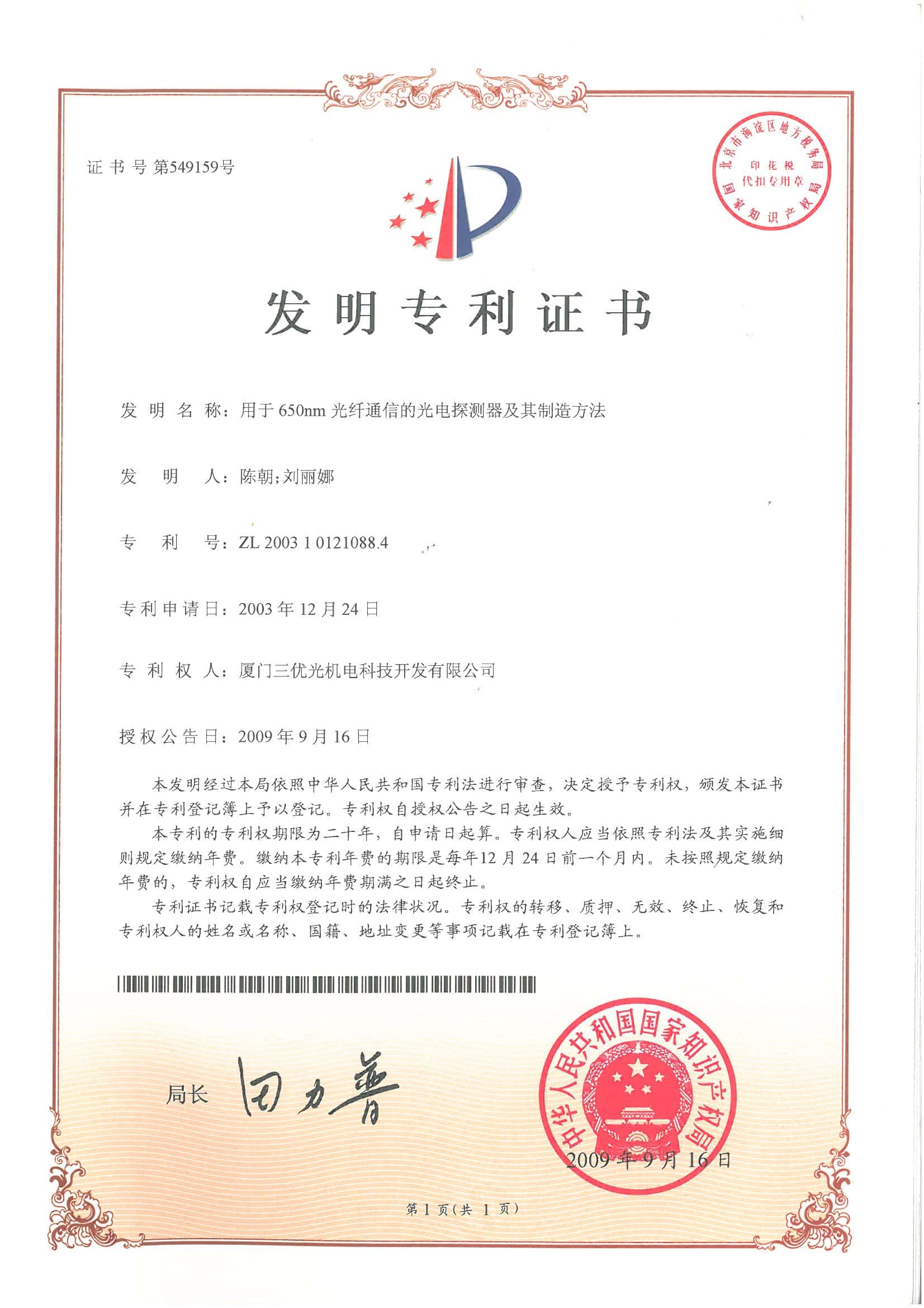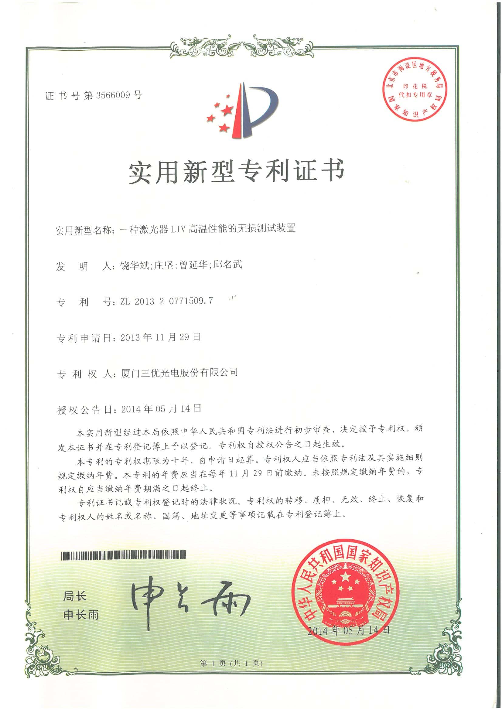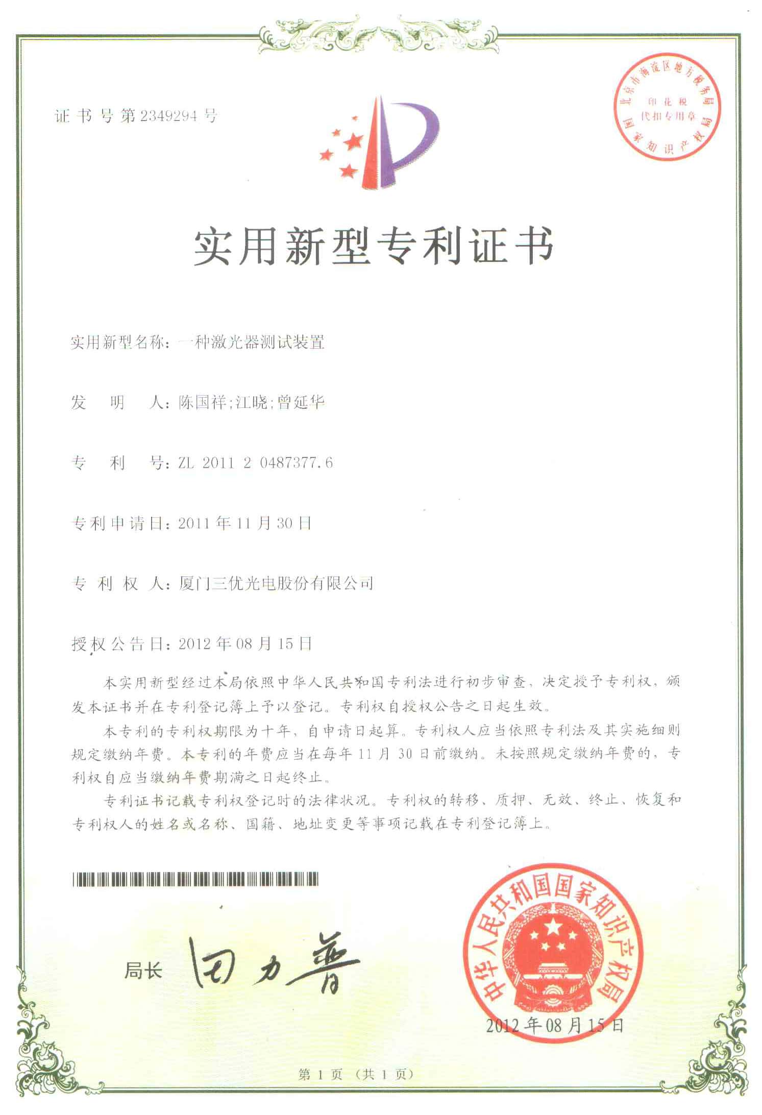 We have16 invention patents and over 40 new utilitypatents.SAN-U's products are laser diode.photodiode TO-CAN packages, and opticalsubassemblies(OSA) which areapplied to FTTHwireless,cable television(CATV)industries.other telecommunications and data communications.