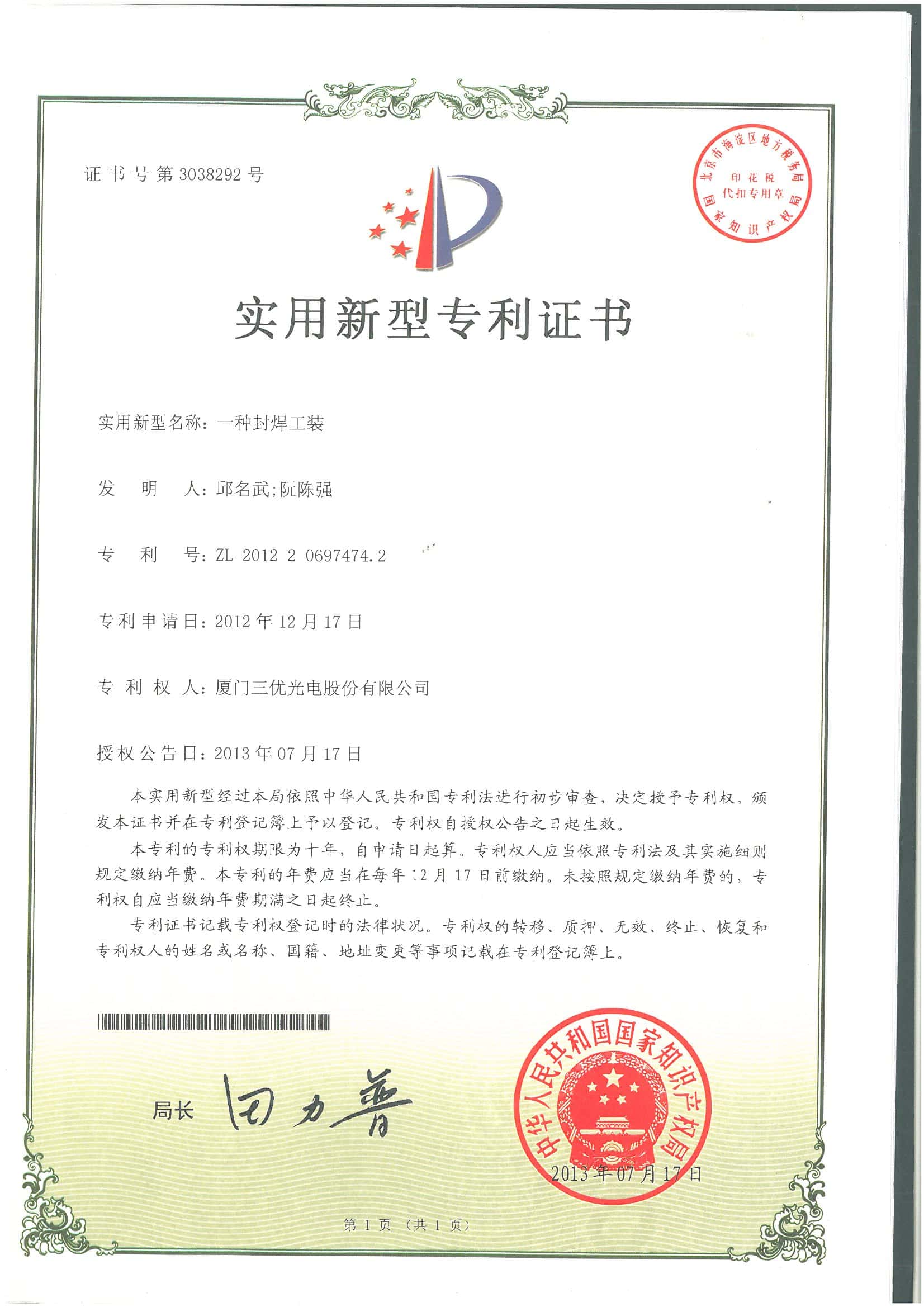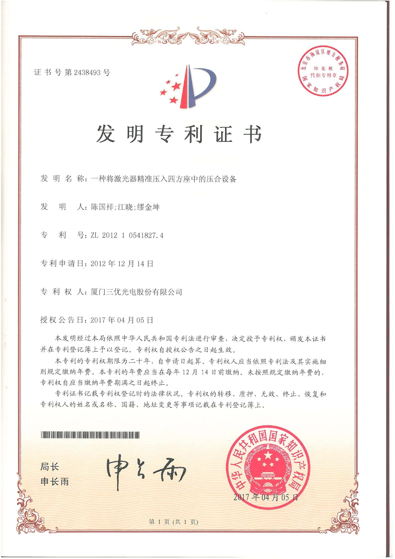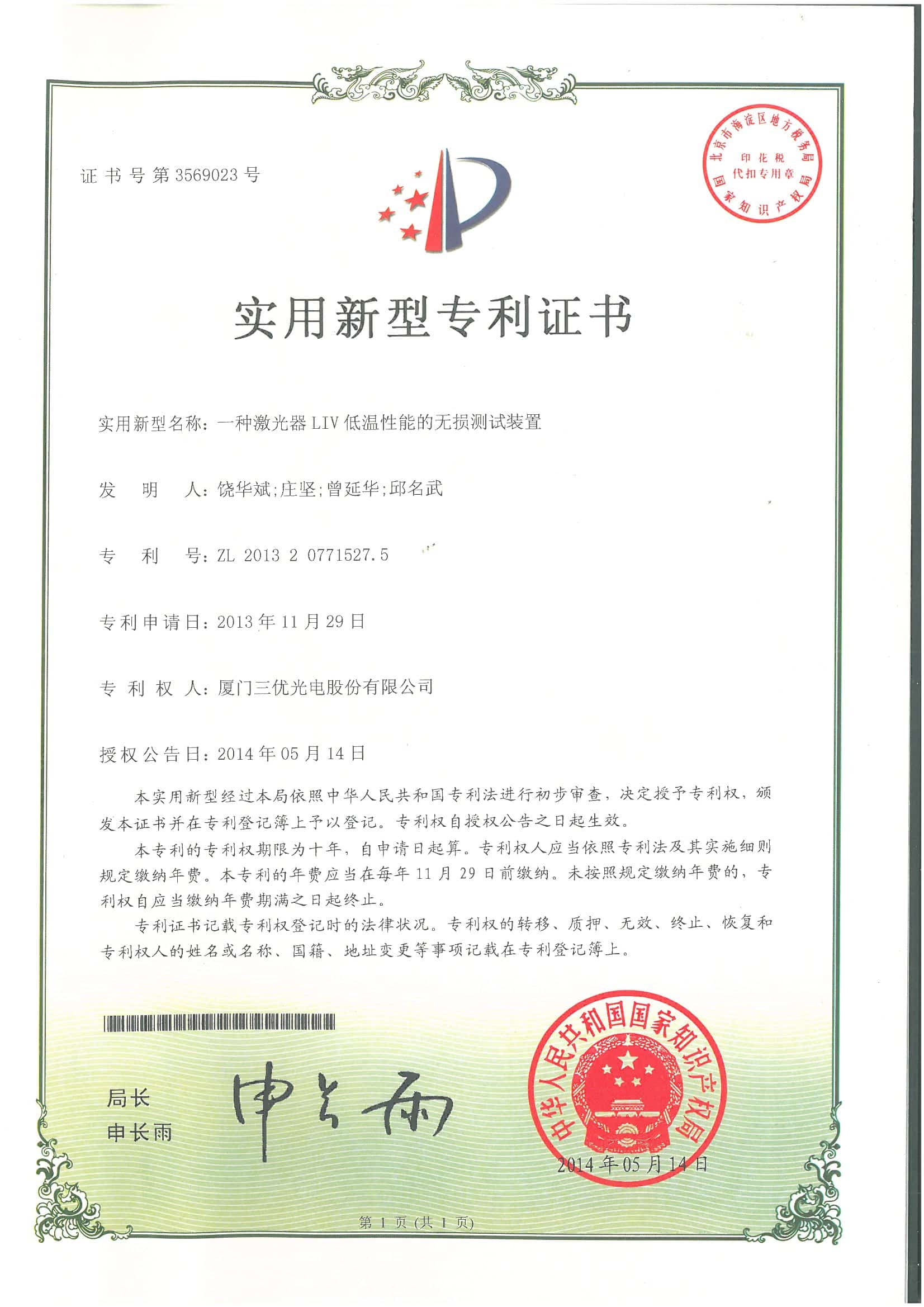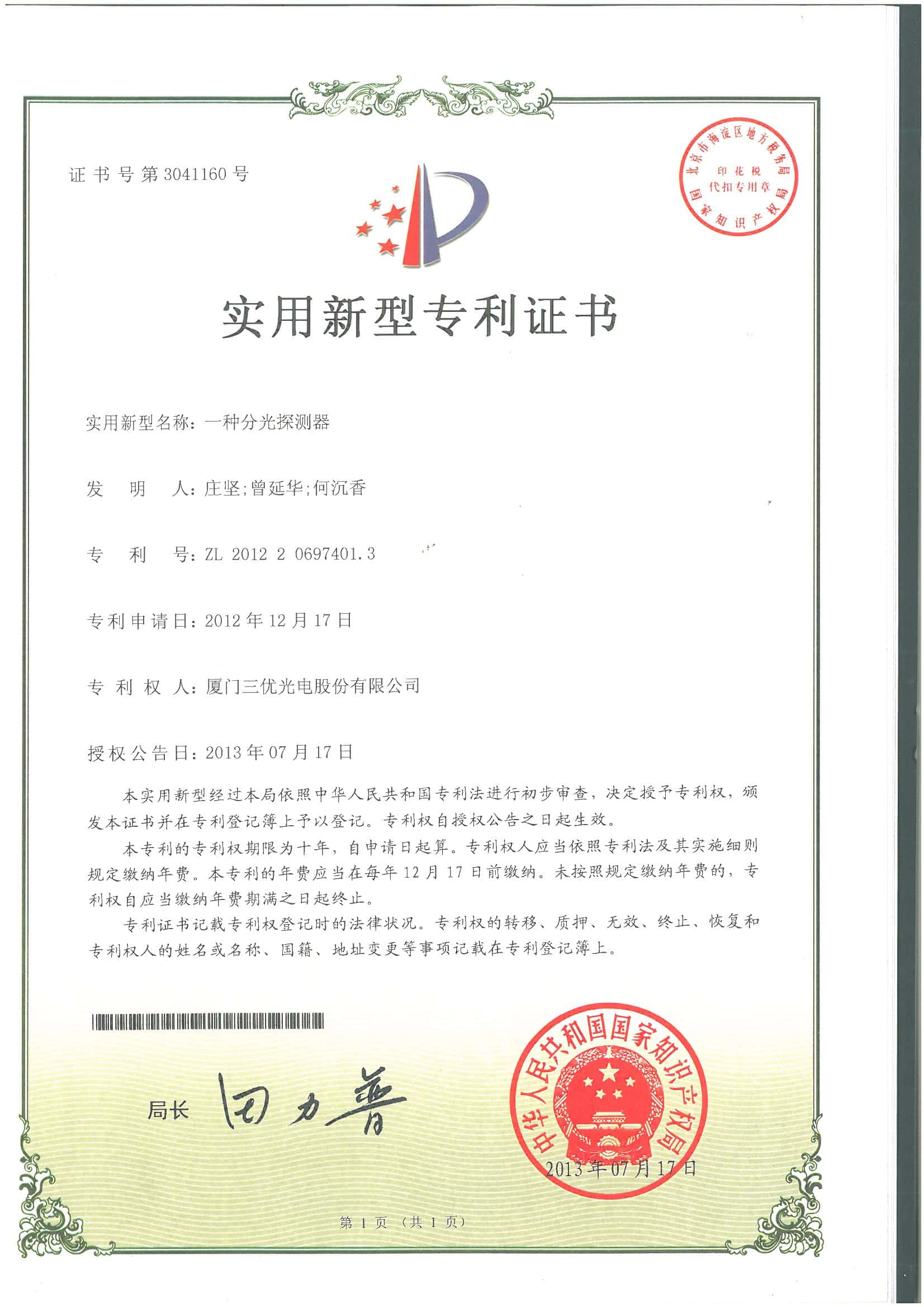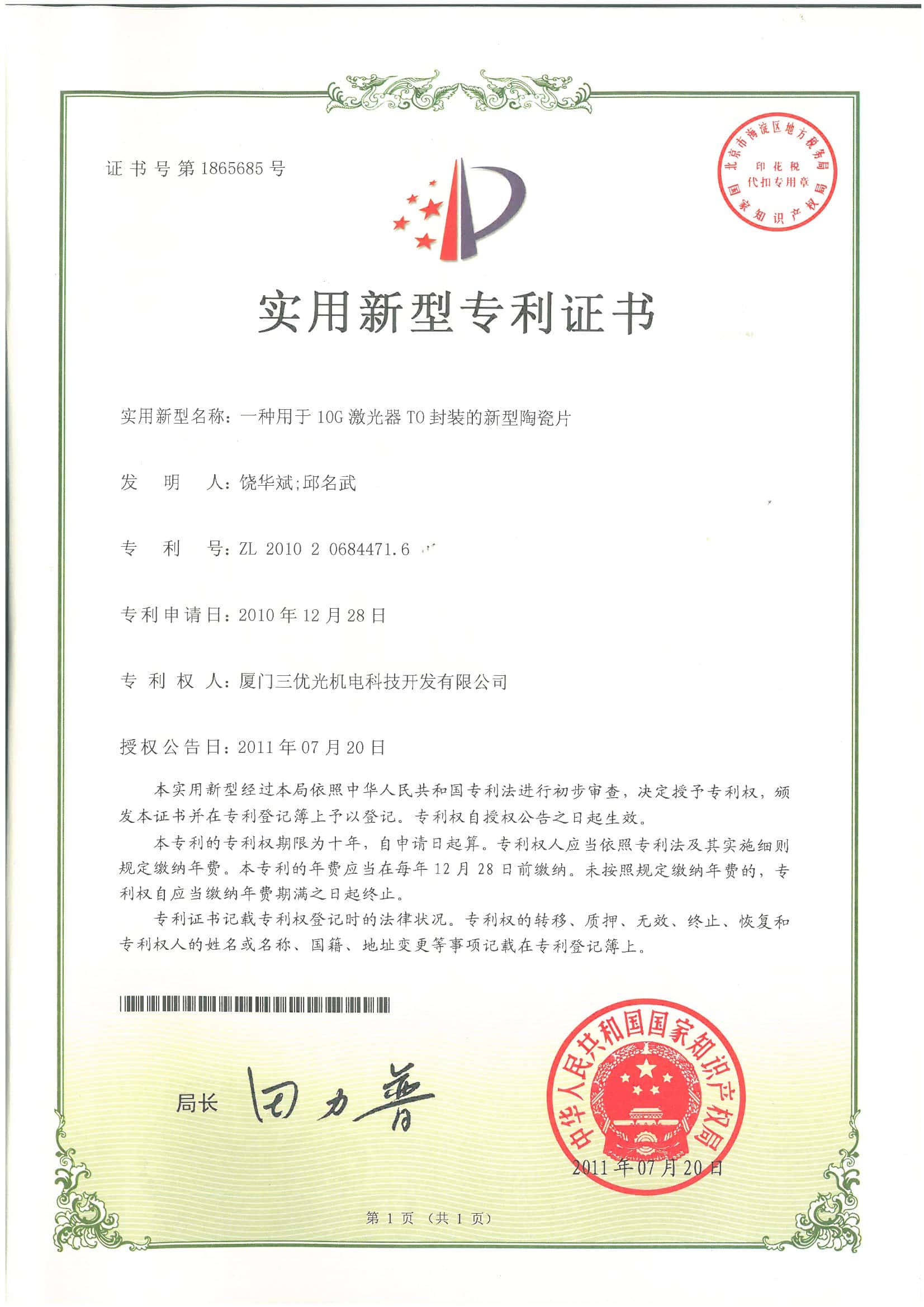 We have16 invention patents and over 40 new utilitypatents.SAN-U's products are laser diode.photodiode TO-CAN packages, and opticalsubassemblies(OSA) which areapplied to FTTHwireless,cable television(CATV)industries.other telecommunications and data communications.
