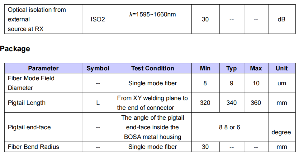 10G XGS PON ONU BOSA with pigtail Bi-Directional Optical Sub-Assembly