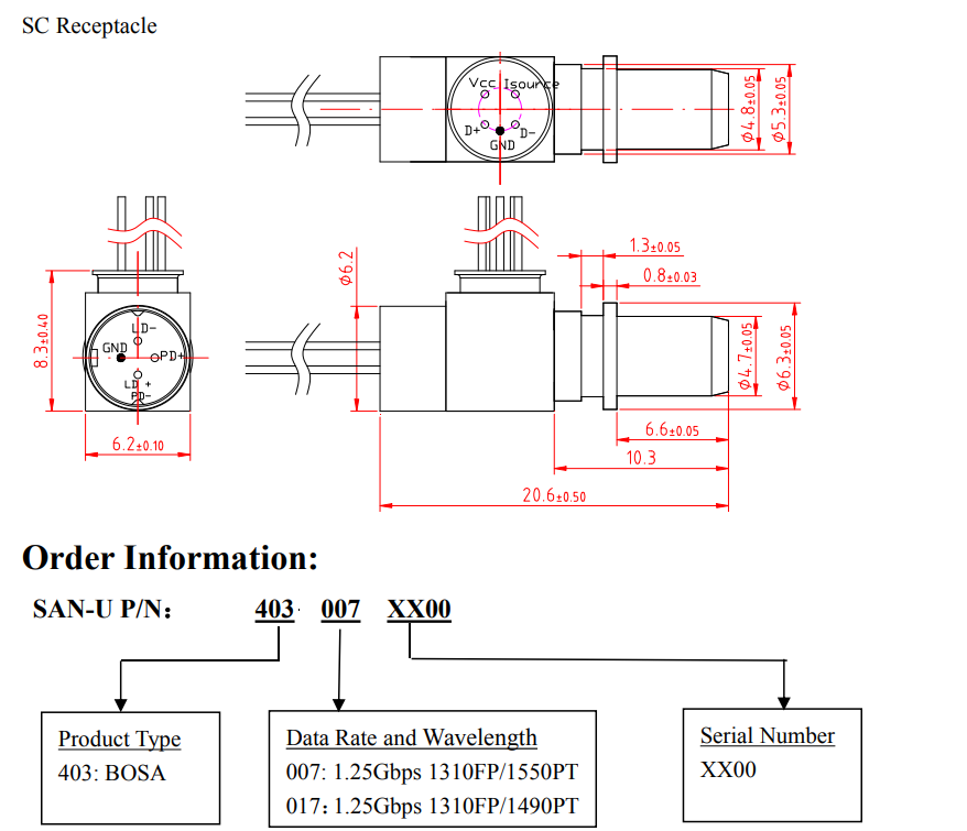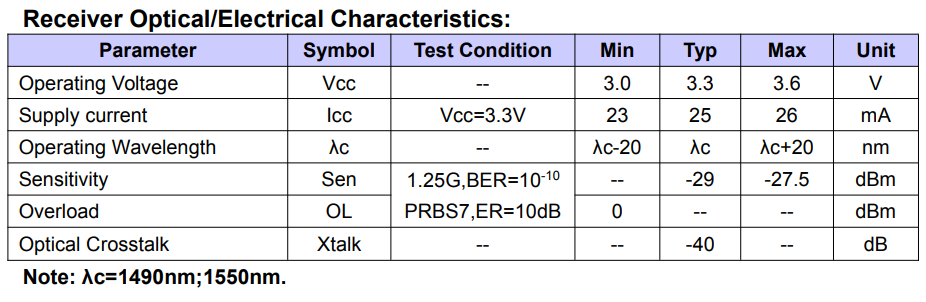 1.25Gbps BOSA Bi-Directional Optical Sub-Assembly
