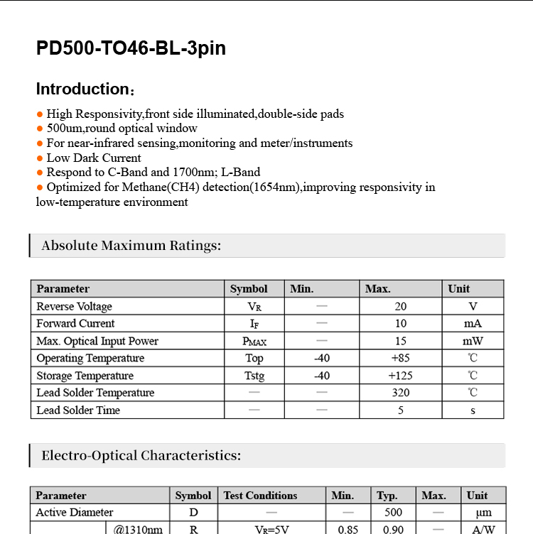 PD500-TO46-BL-3pin CH4 gas sensor photodiode